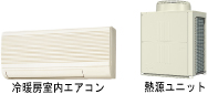 水・地熱原タイプの場合、下記の冷房用冷却水を給湯用の熱源水に利用することで、従来よりも15〜40%の冷房能力アップを実現します。また、お湯づくりはタダでできるのでとても費用がお得で経済的です。